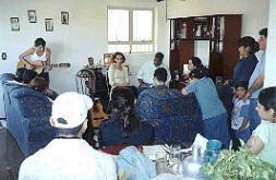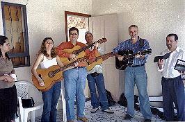 o nosso som e afinamos os nossos violões. Que maravilha! Cantamos