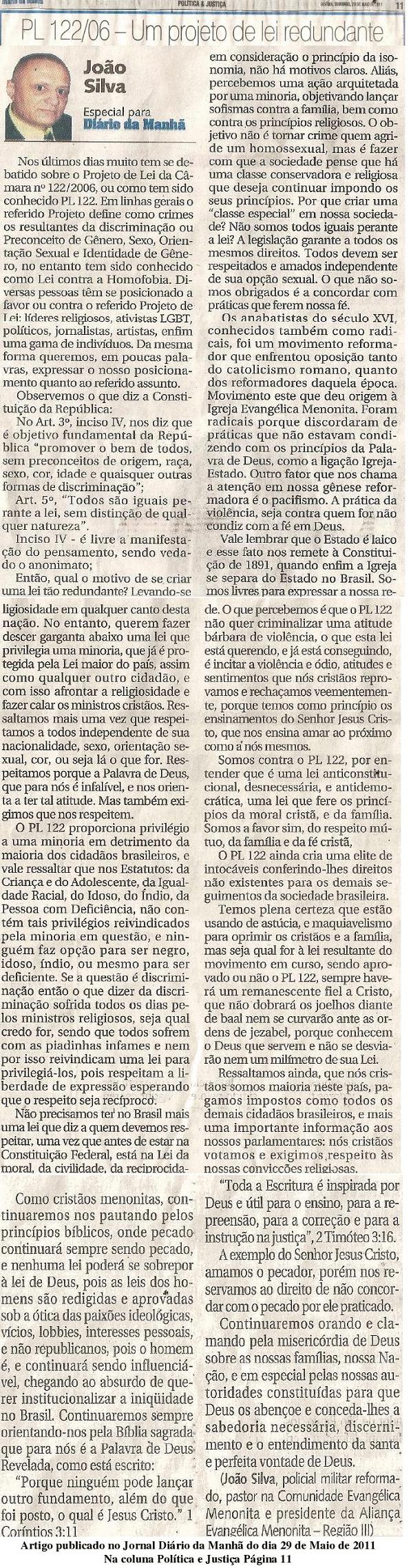 JULIO SEVERO NA SUA LUTA CONTRA O PLC 122 PLC
